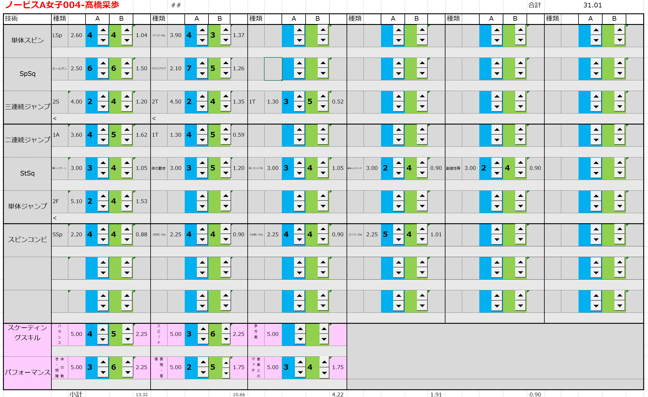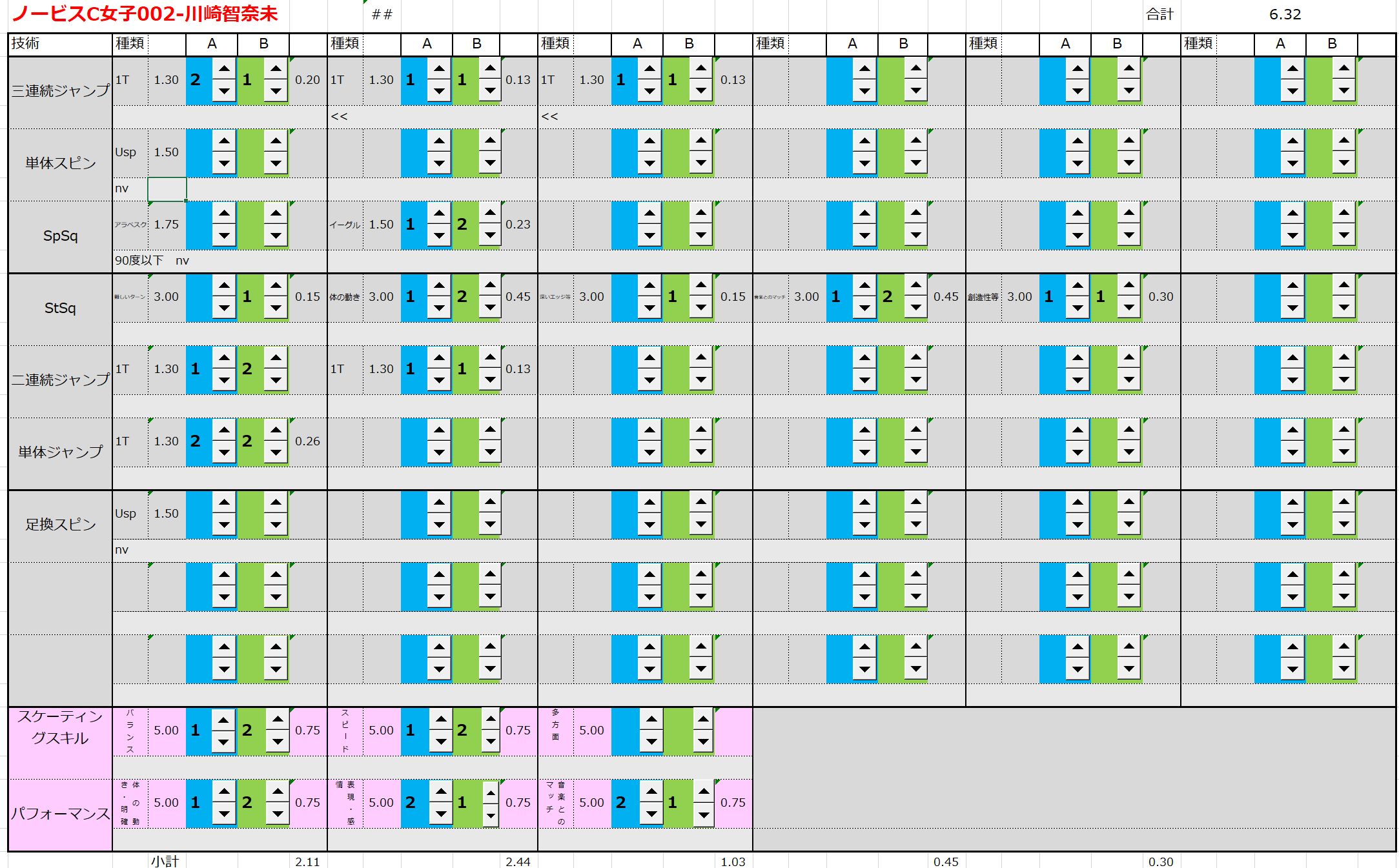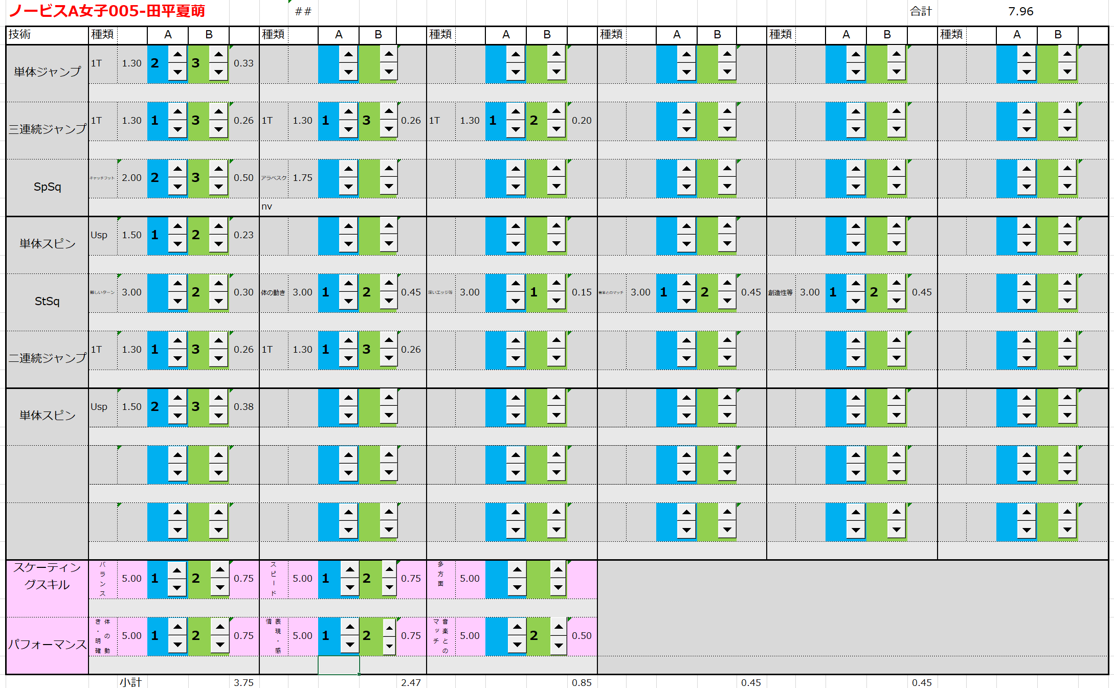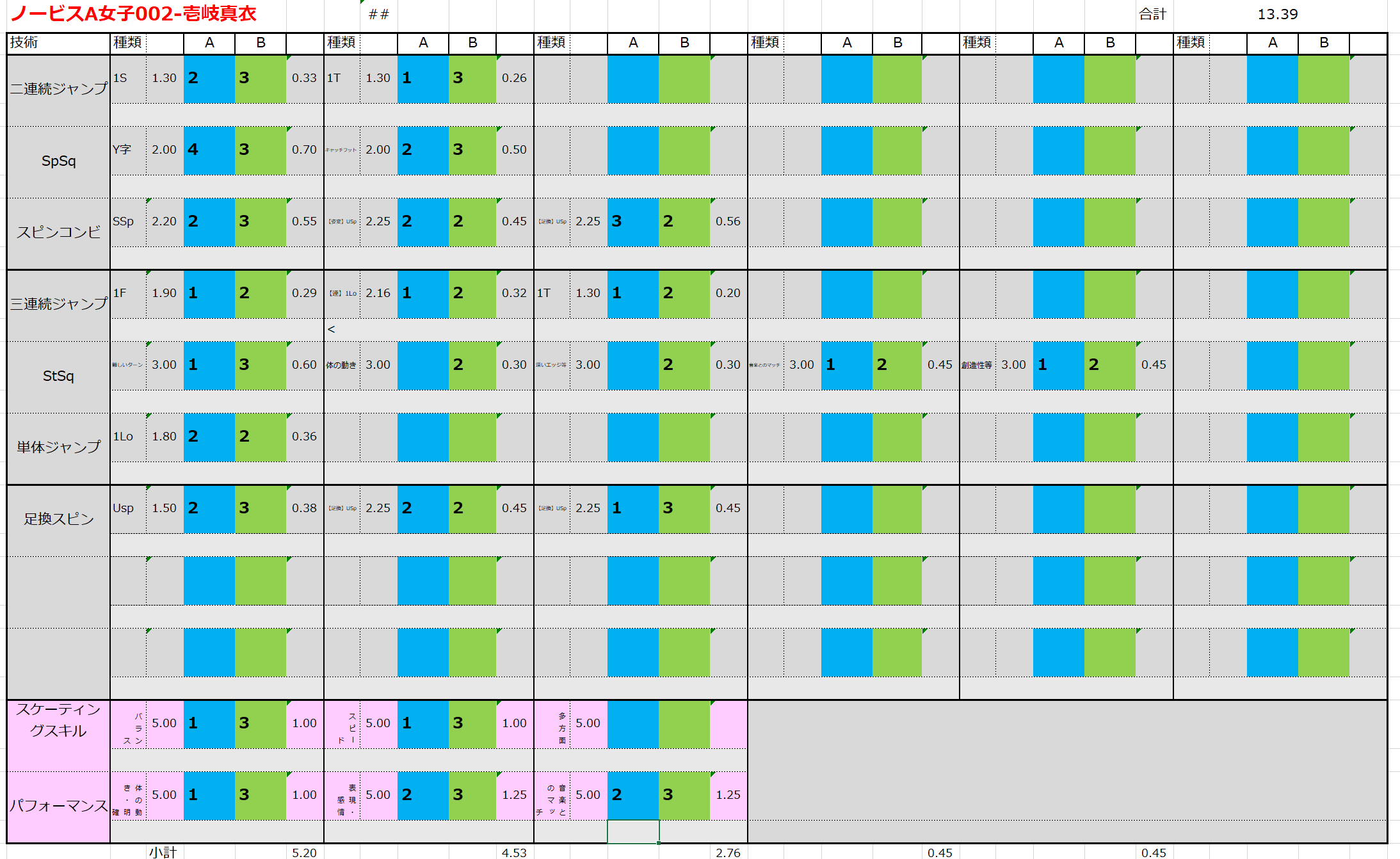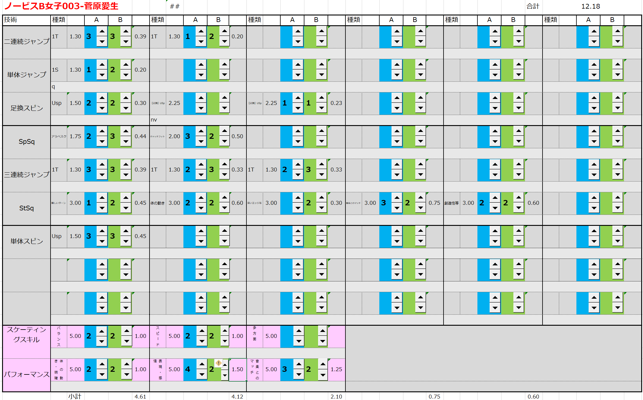 ※ 昨年からスピンやスパイラルの配点が変更になっているため、昨年から比較すると1~2割ほど全体的に低い配点となっています。