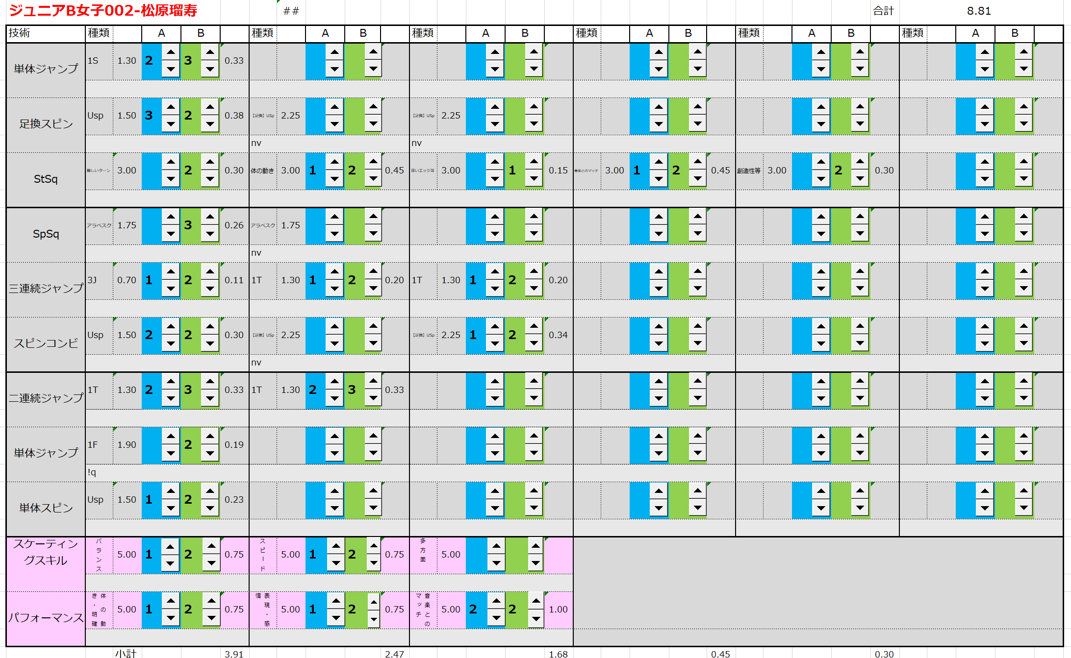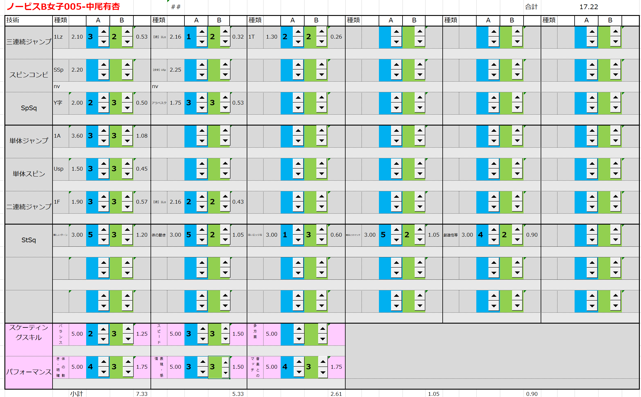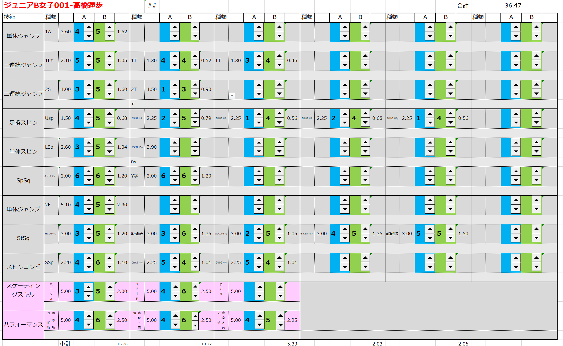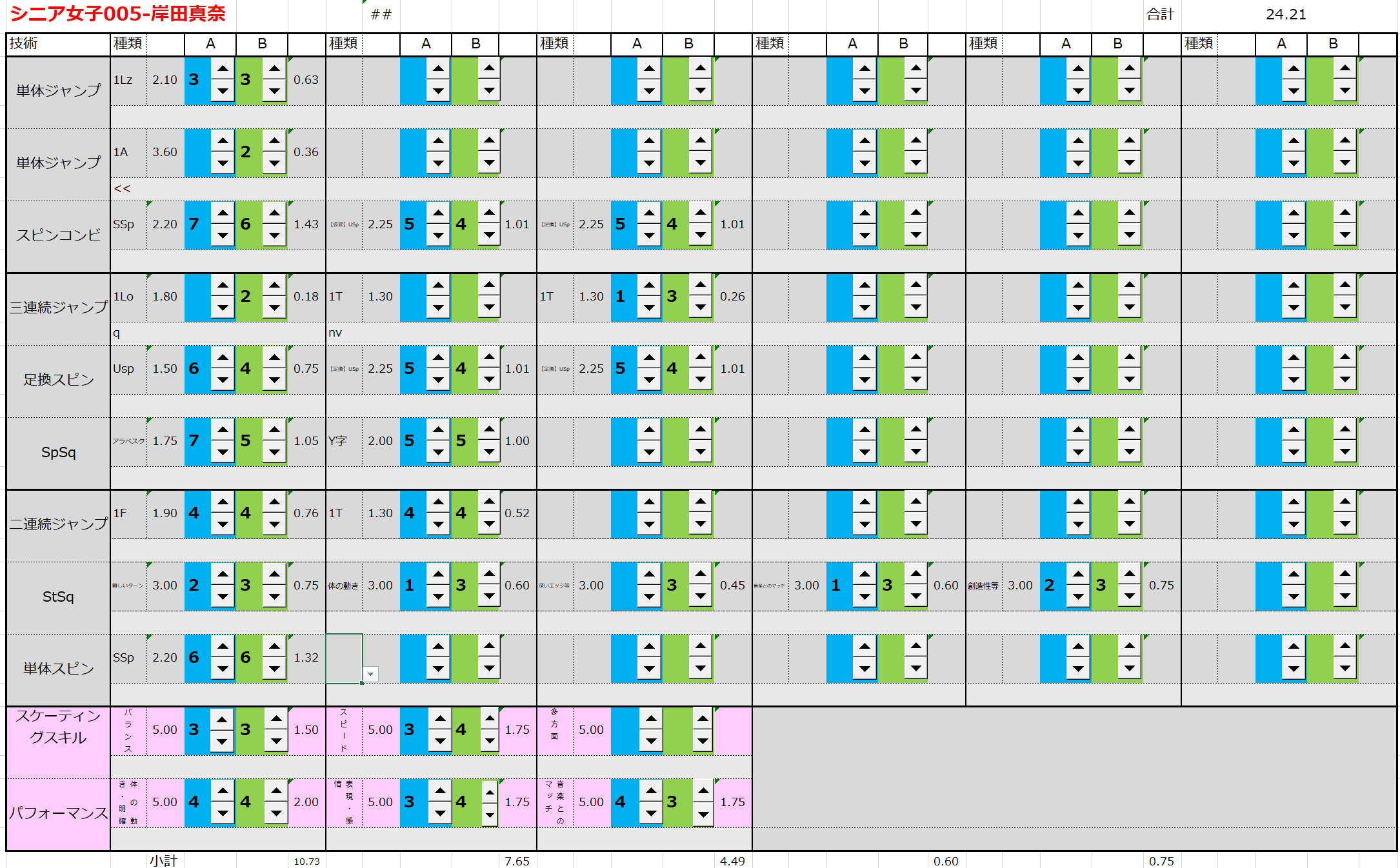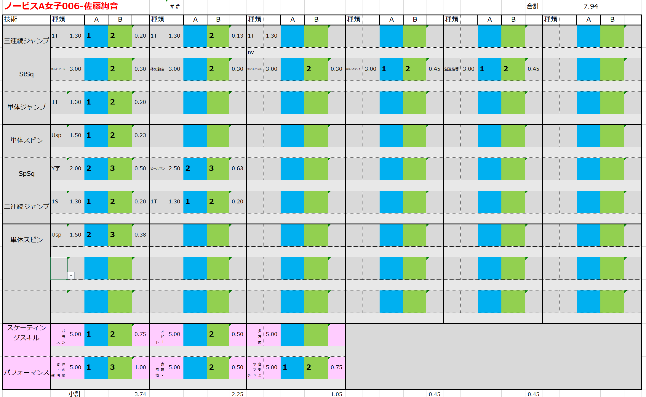 ※ 昨年からスピンやスパイラルの配点が変更になっているため、昨年から比較すると1~2割ほど全体的に低い配点となっています。
