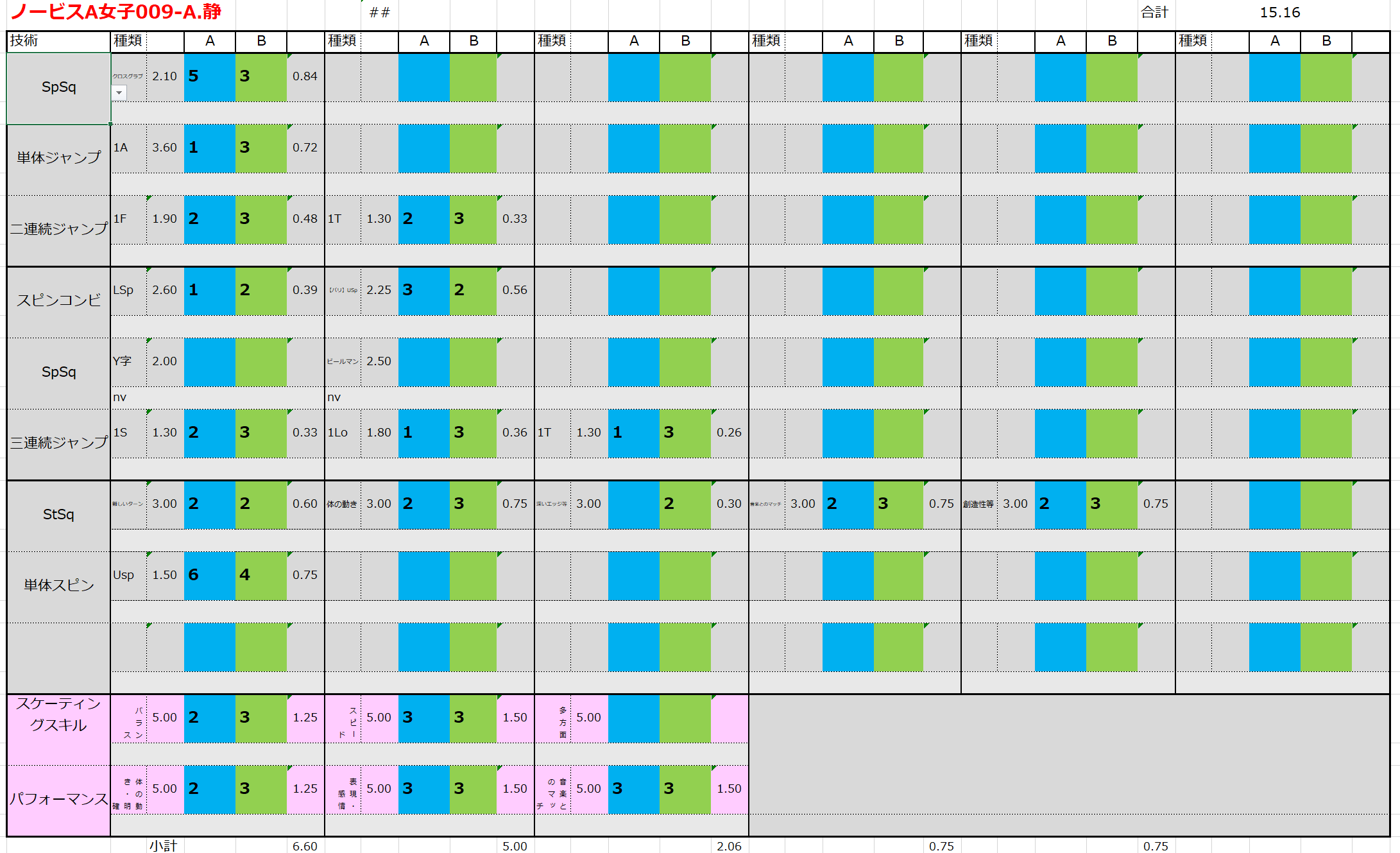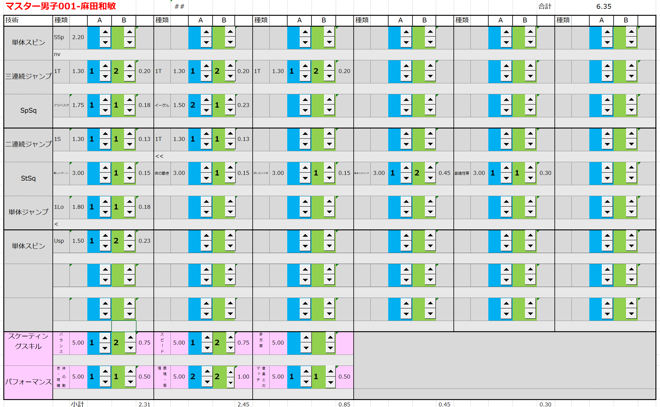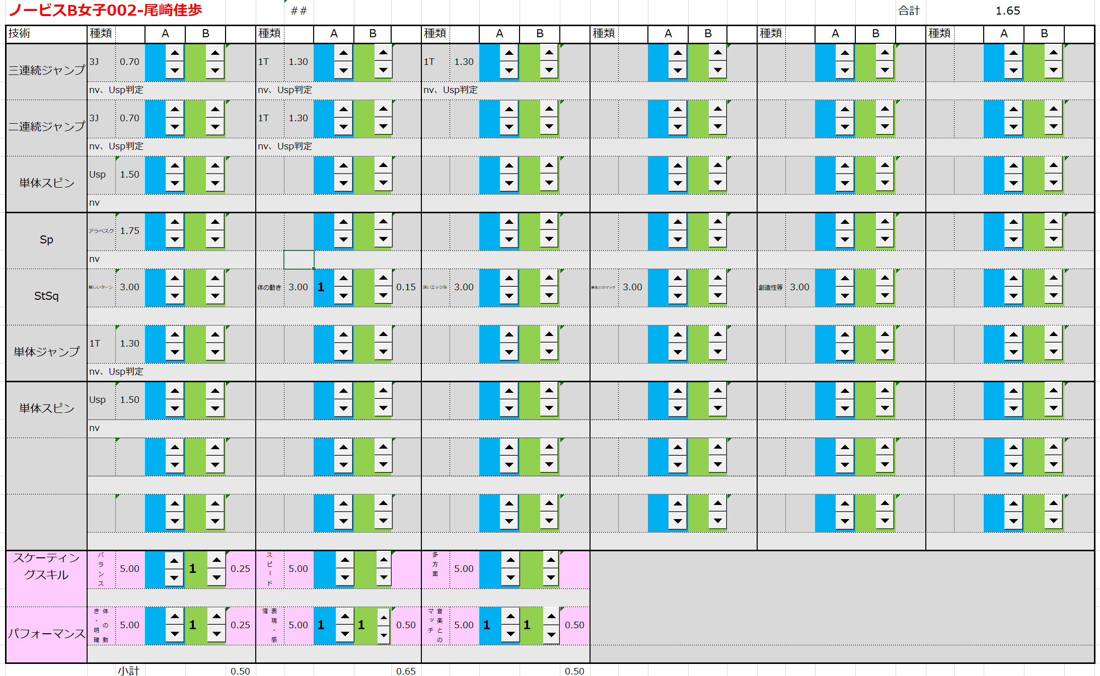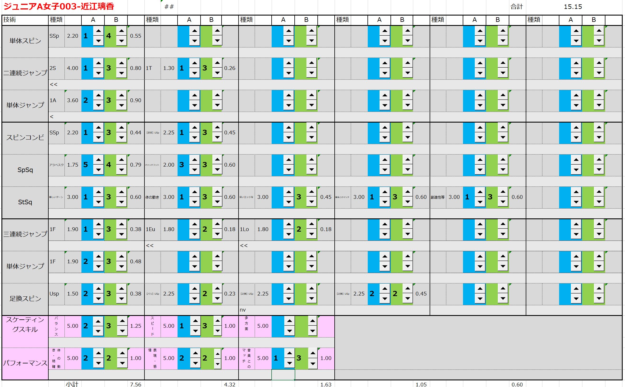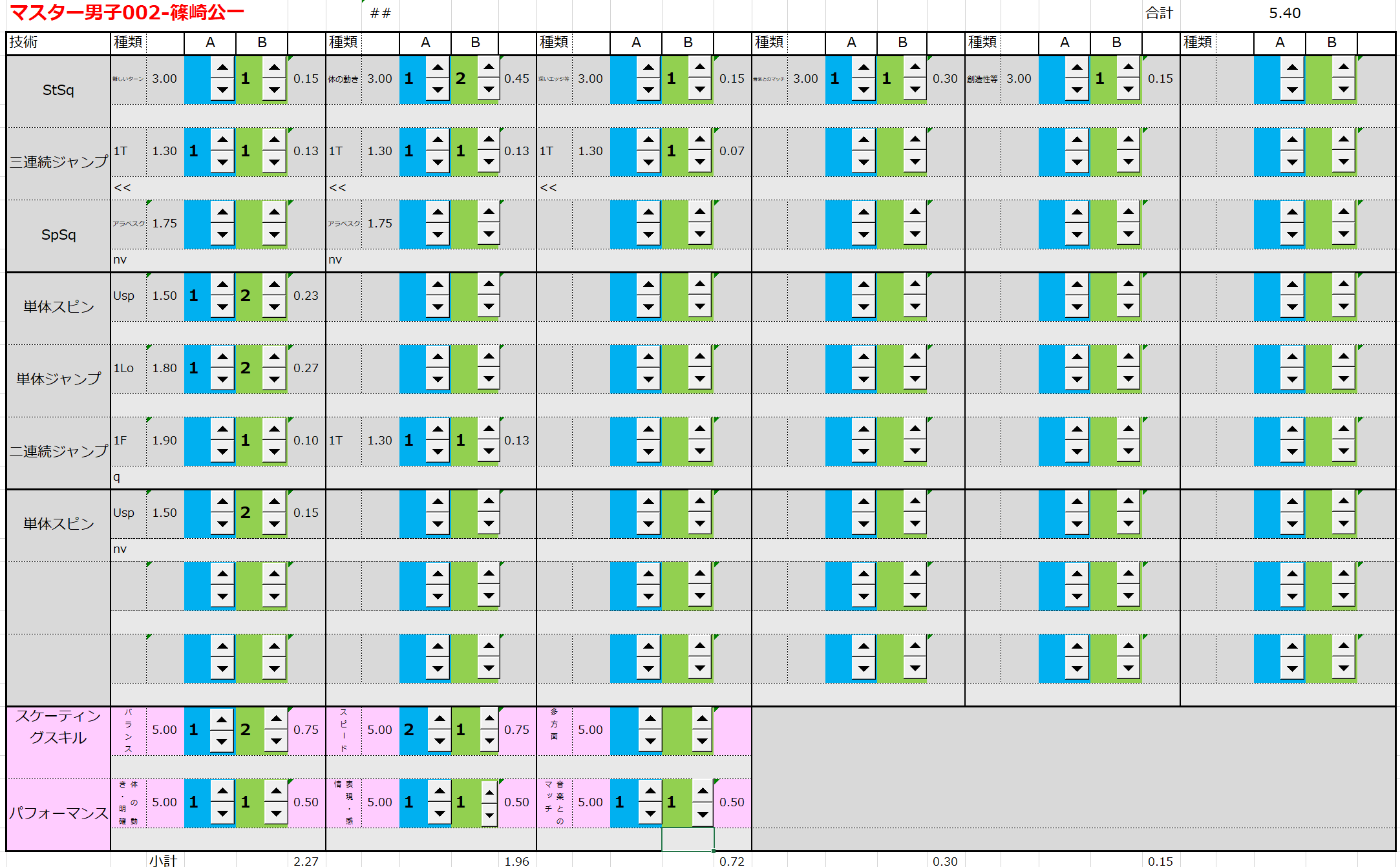 ※ 昨年からスピンやスパイラルの配点が変更になっているため、昨年から比較すると1~2割ほど全体的に低い配点となっています。