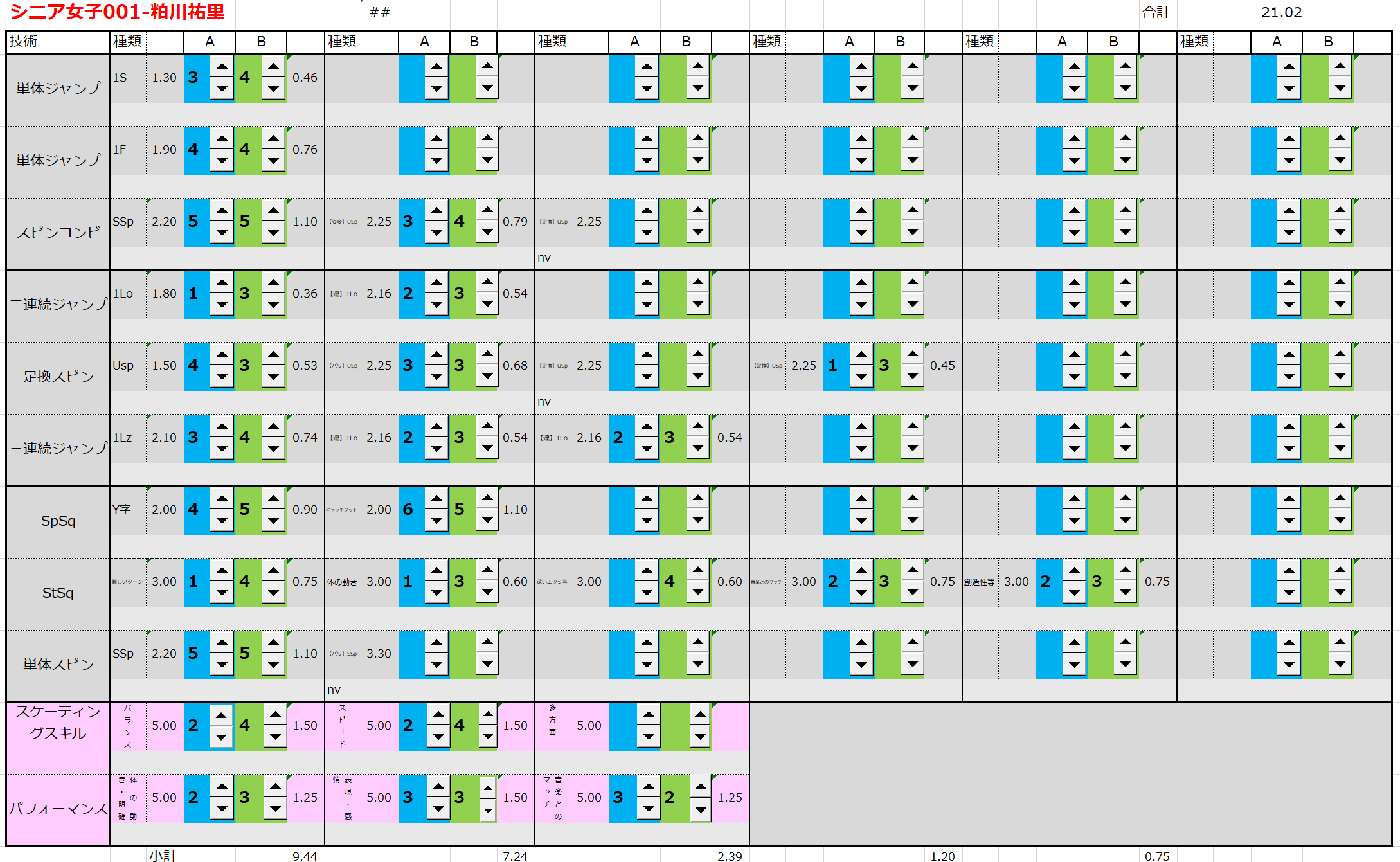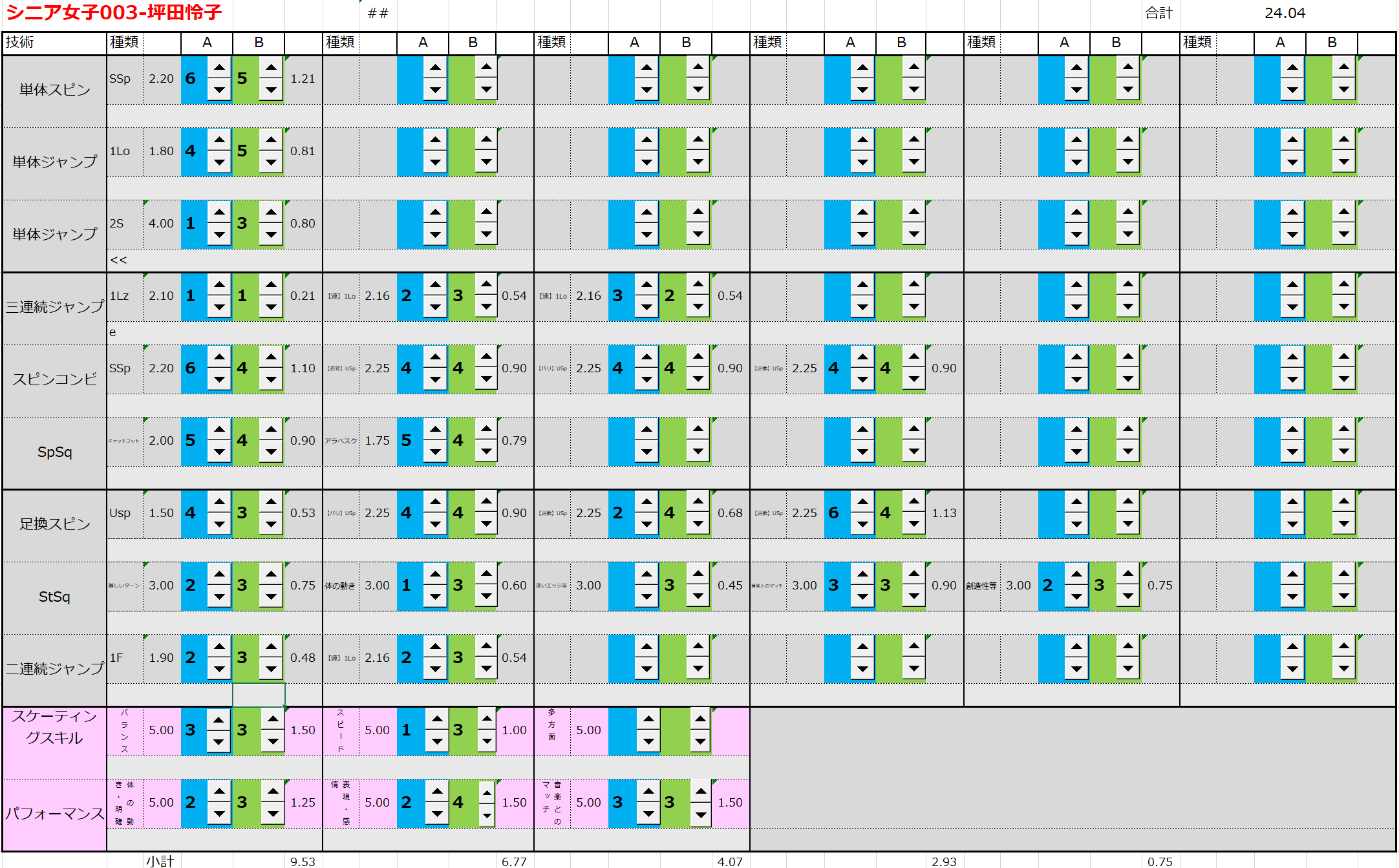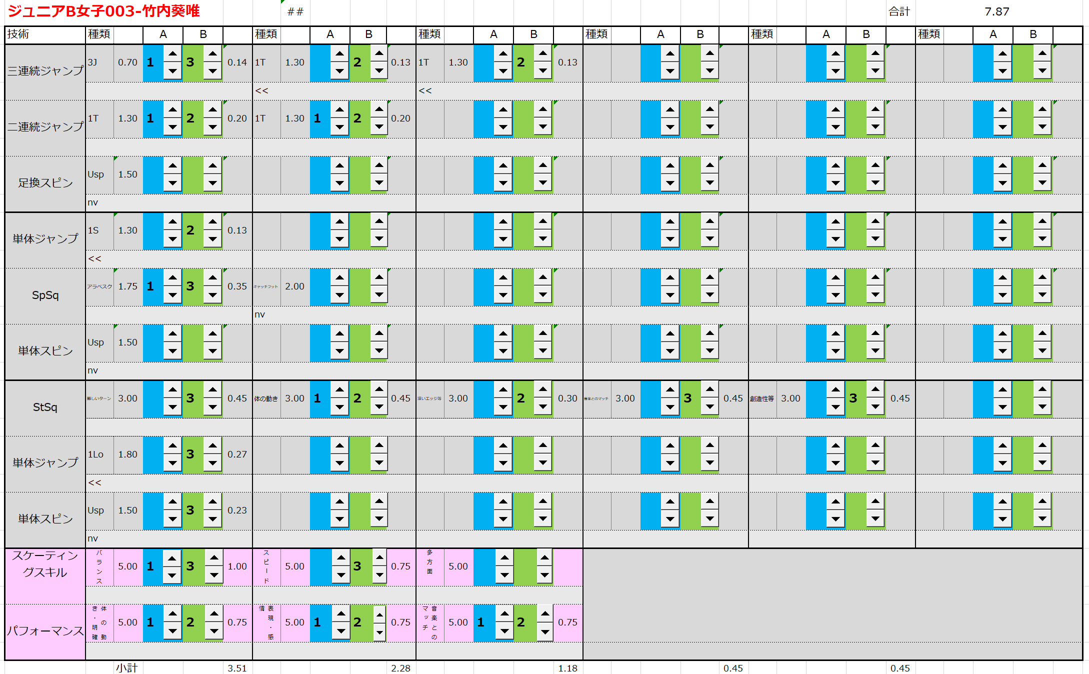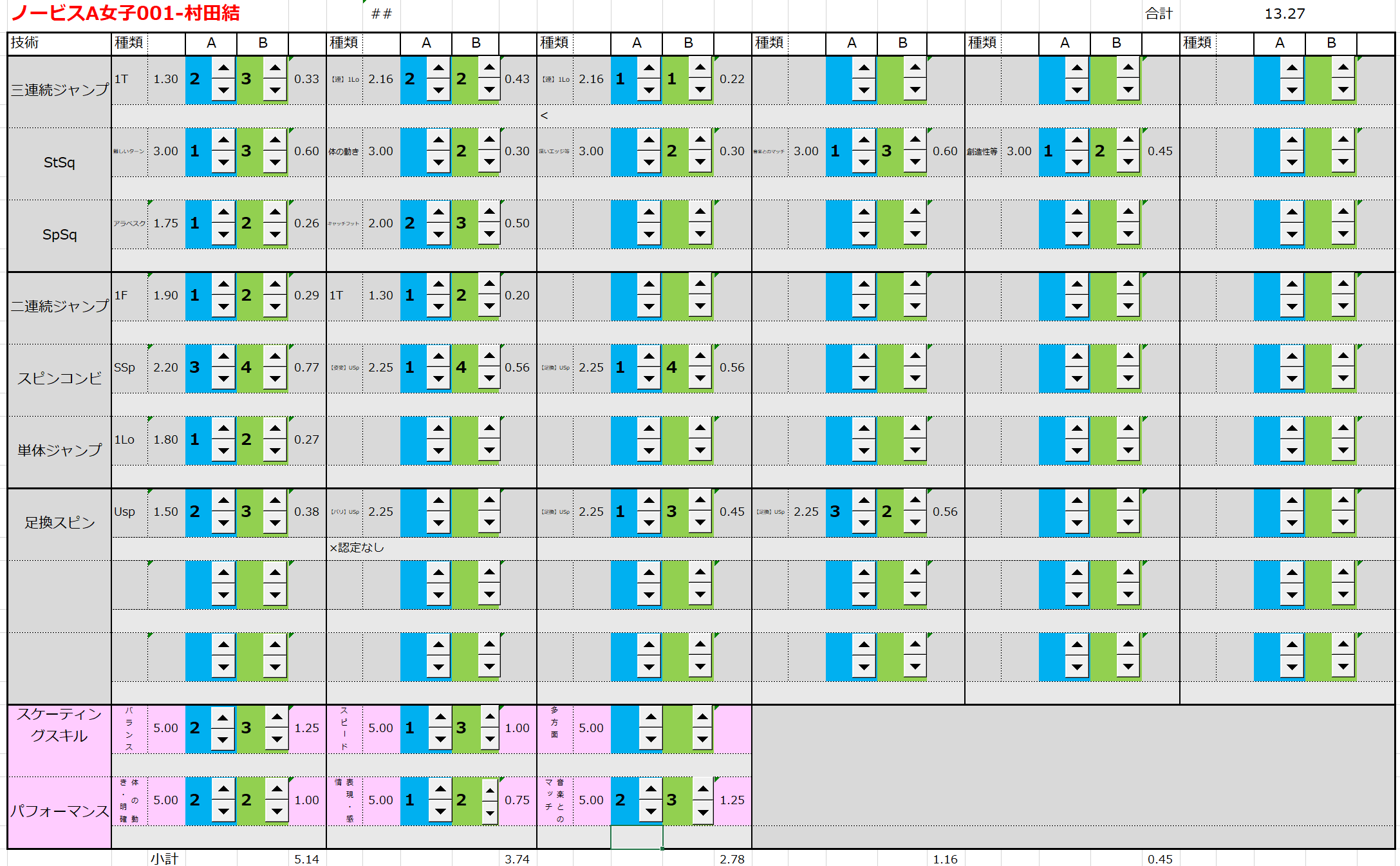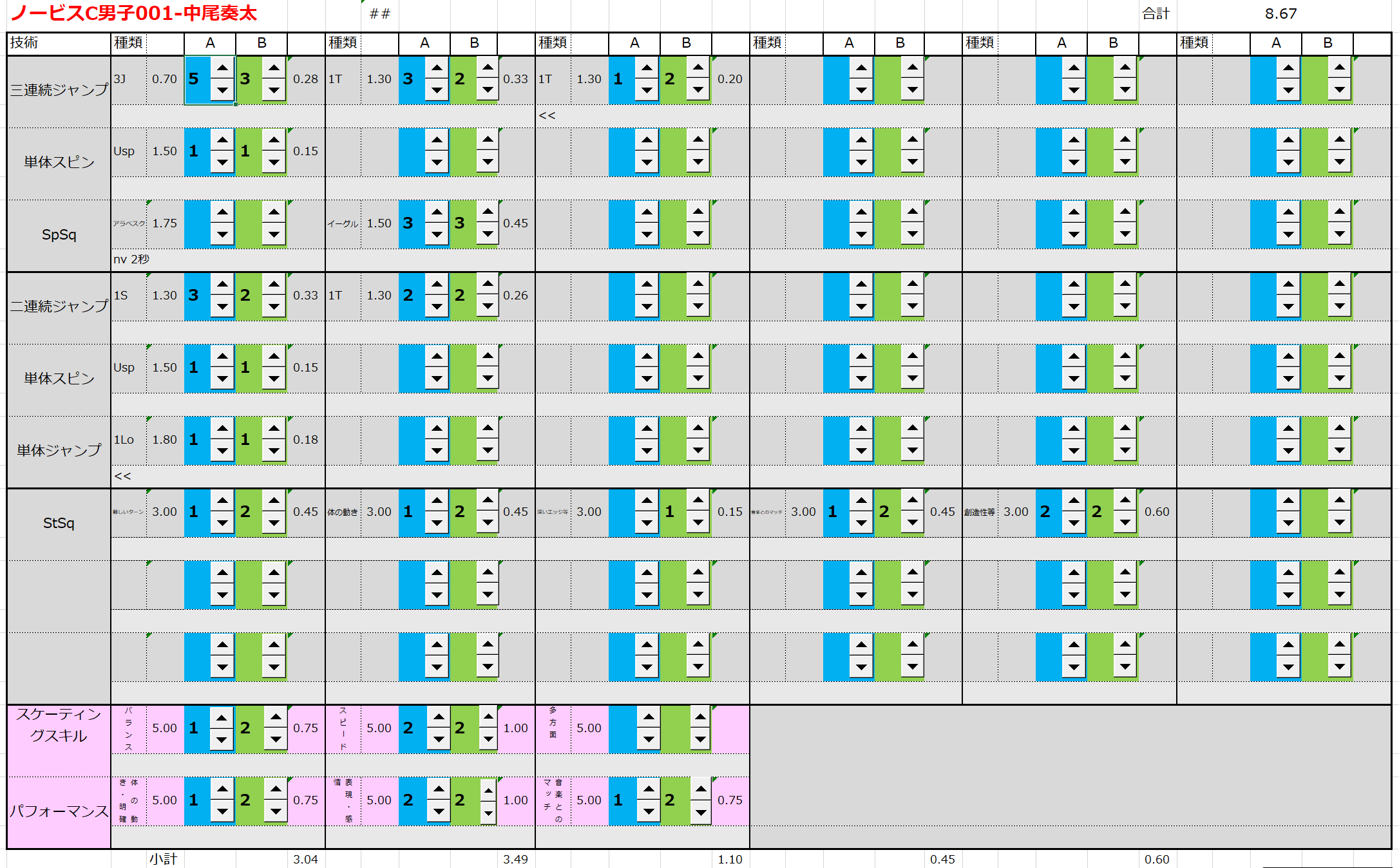 ※ 昨年からスピンやスパイラルの配点が変更になっているため、昨年から比較すると1~2割ほど全体的に低い配点となっています。