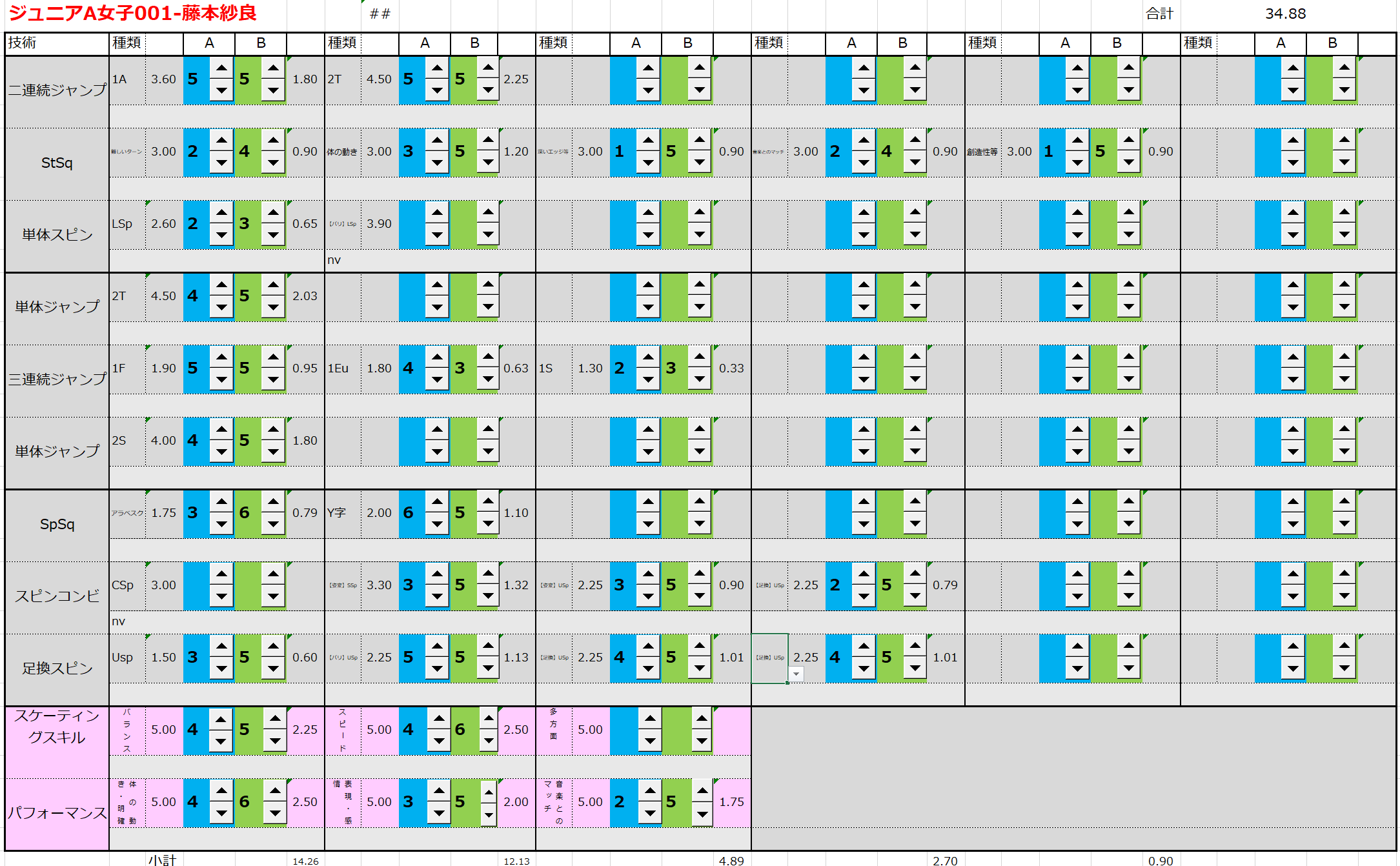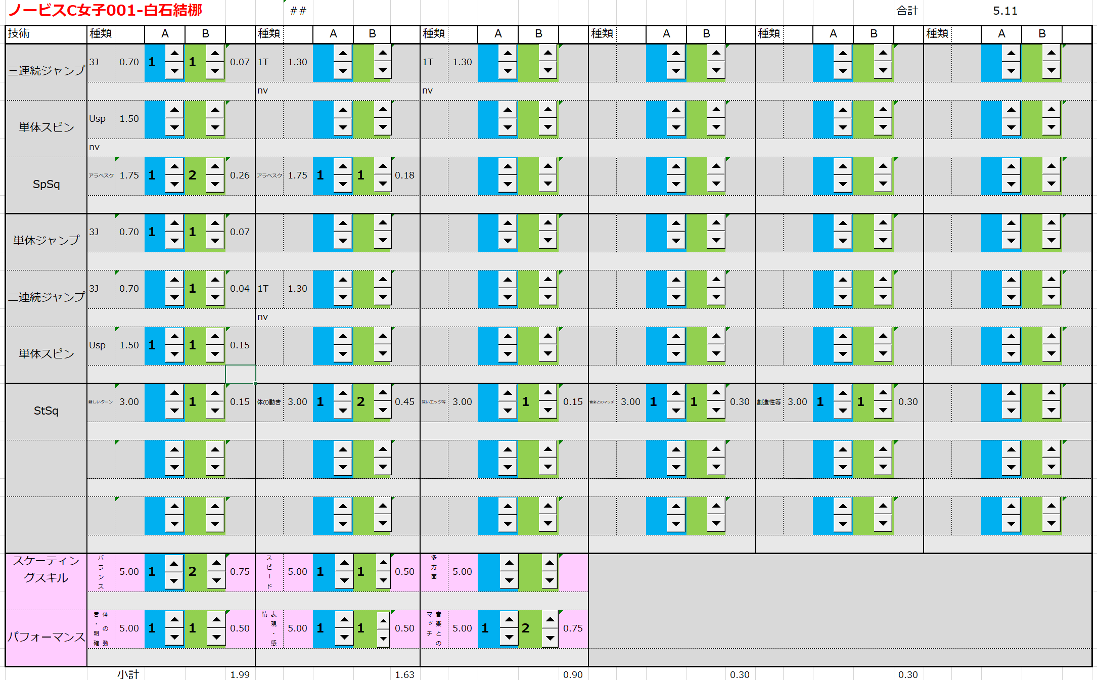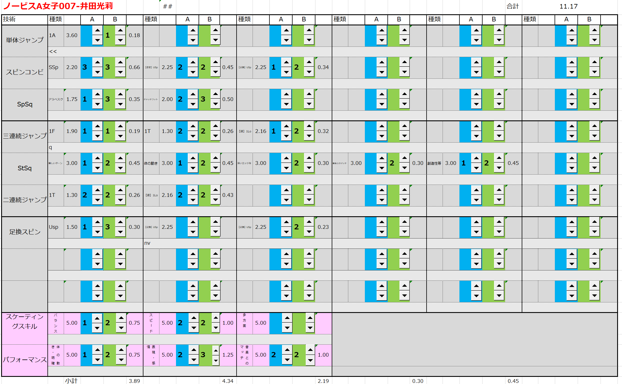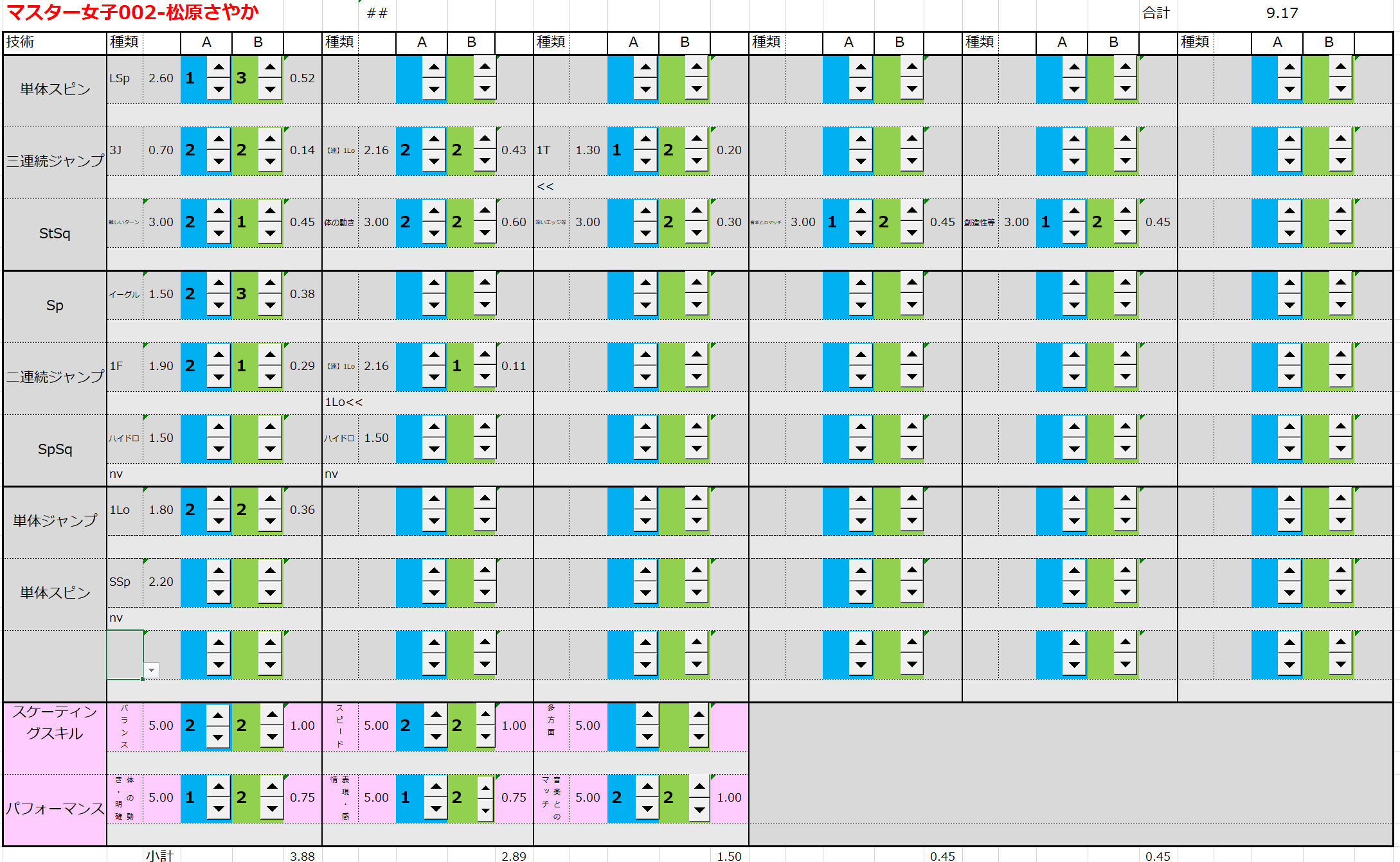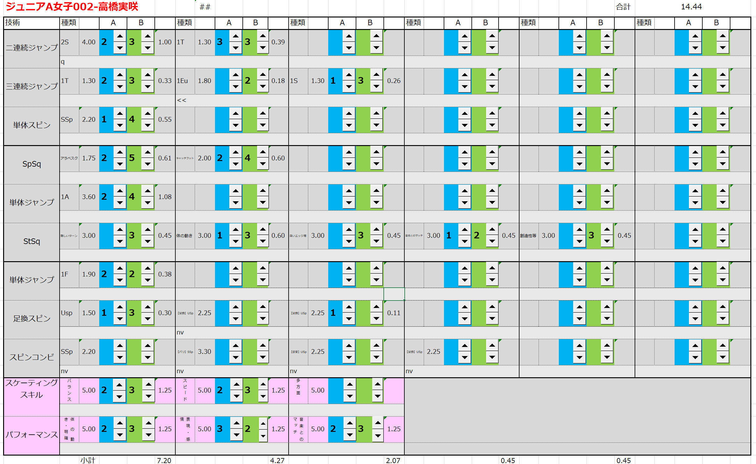 ※ 昨年からスピンやスパイラルの配点が変更になっているため、昨年から比較すると1~2割ほど全体的に低い配点となっています。