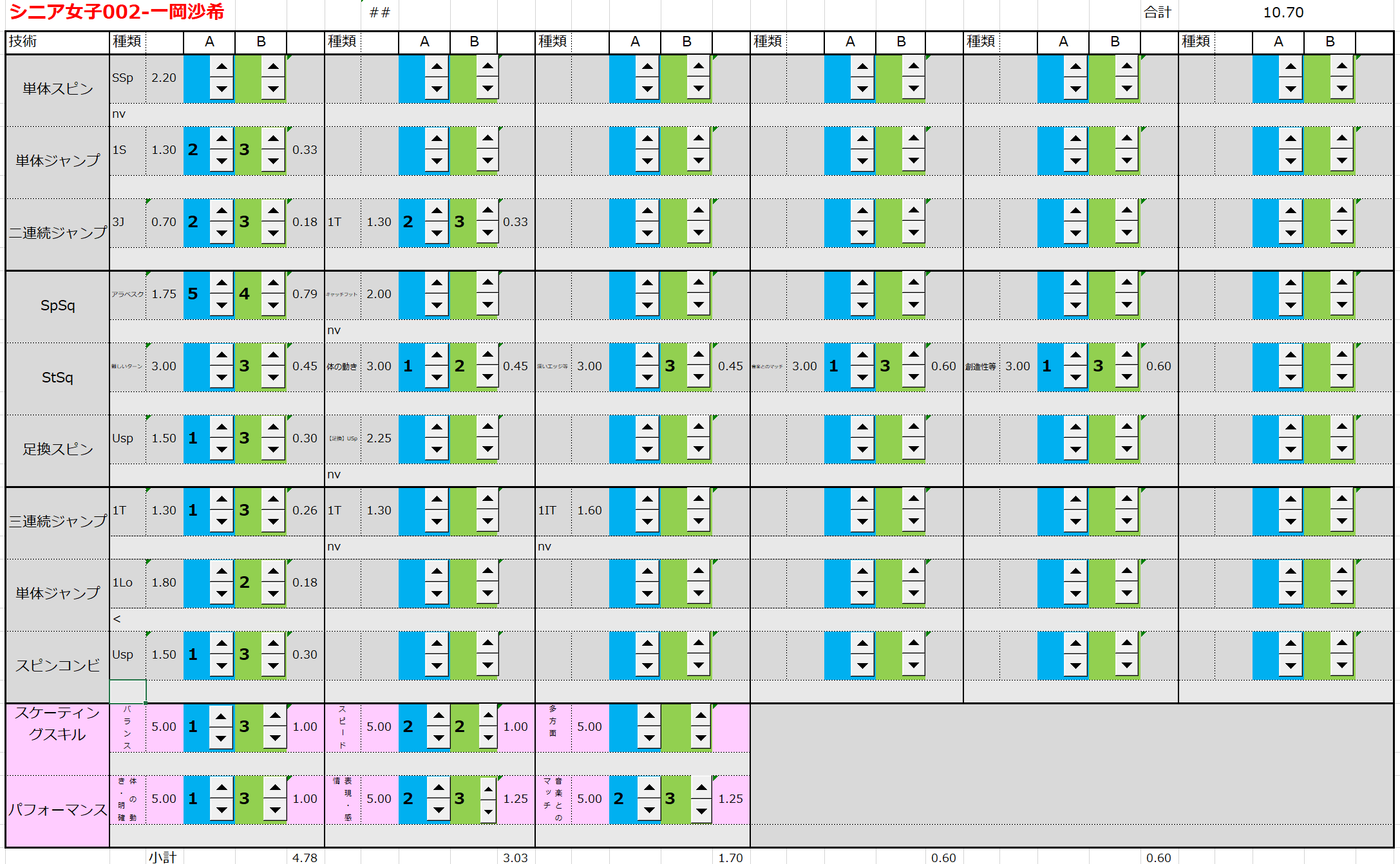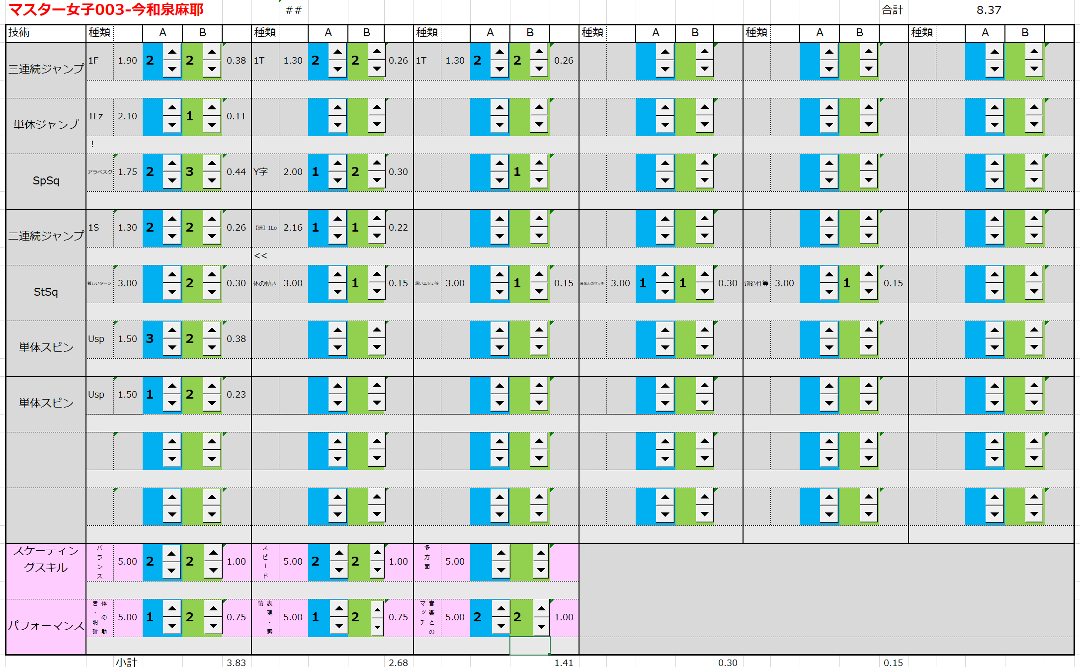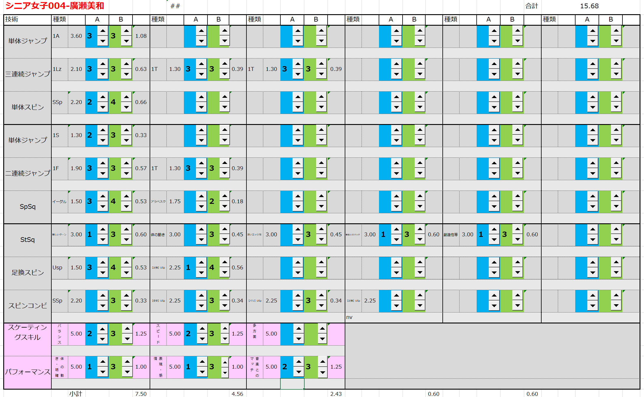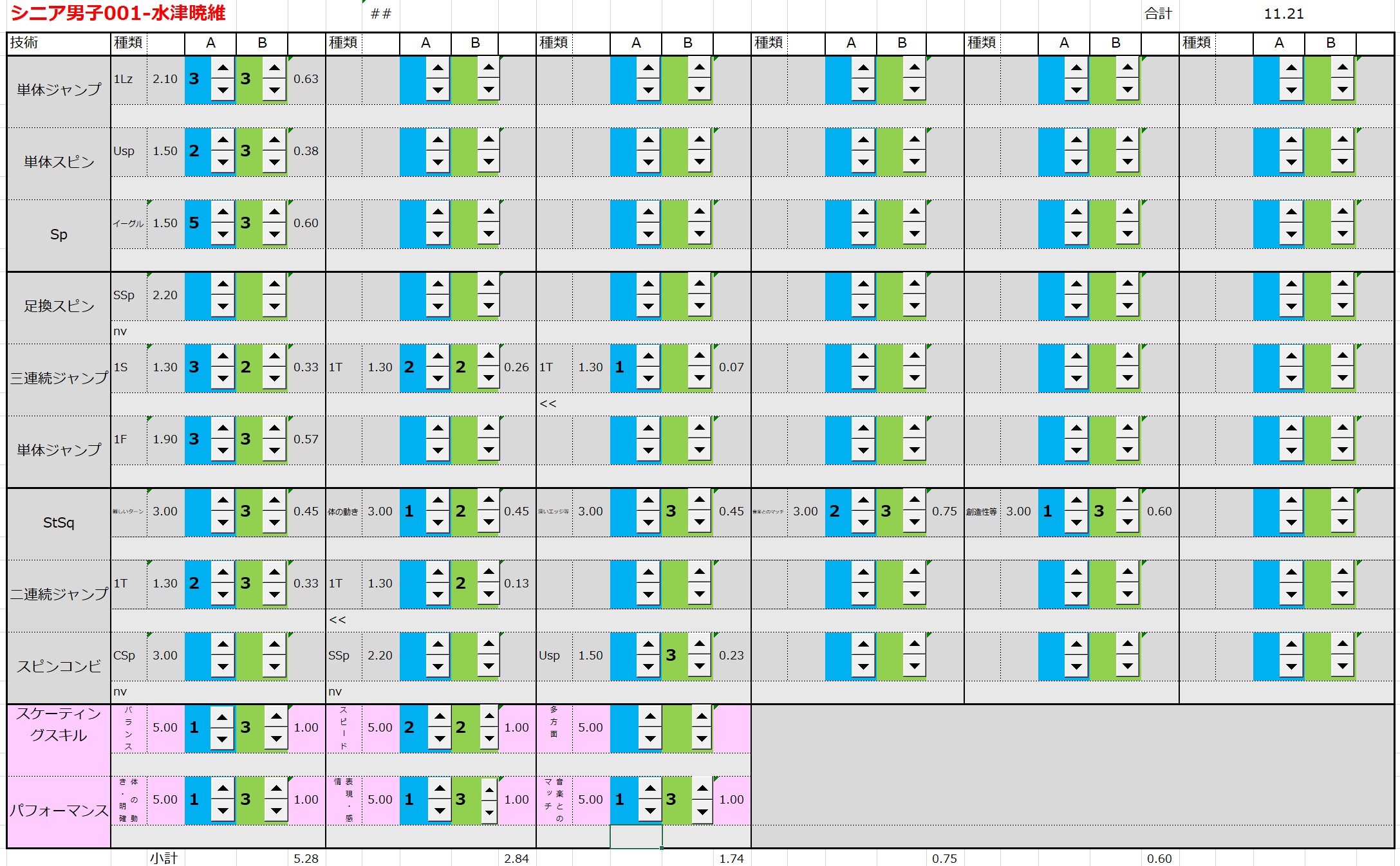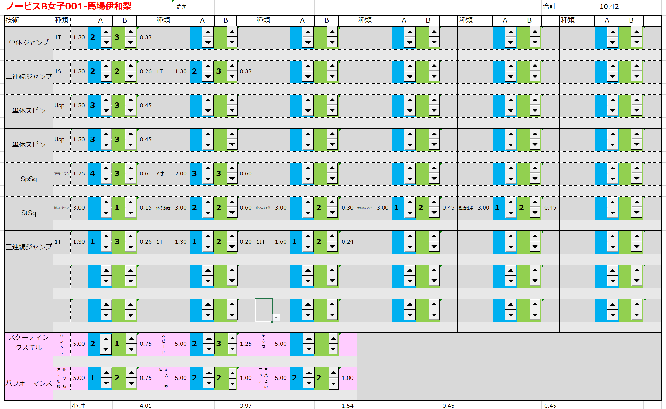 ※ 昨年からスピンやスパイラルの配点が変更になっているため、昨年から比較すると1~2割ほど全体的に低い配点となっています。
